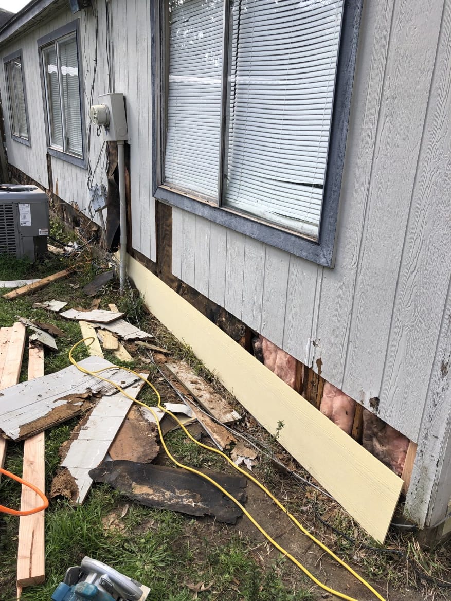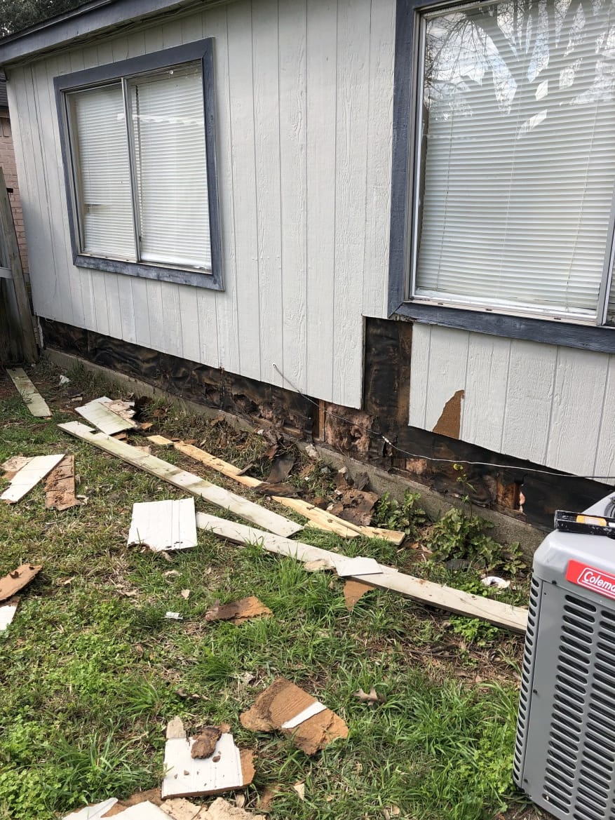 In this project, Tex Touch Remodeling had been recommended by a client to remodel an exterior house boards, we renovated the exterior side walls that were damaged by the flood, cutting, replacing, and installing durable siding wooden boards. We then painted all exterior walls with high quality materials. The customer was more than satisfied by saving his house from damages that had been done to his house.